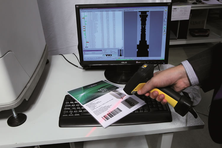 條形碼閱讀器。掃描條形碼,即可從一個工件移至另一個工件。
